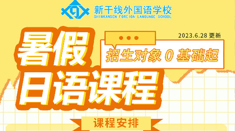 新干线日语暑假班火热开课啦!从五十音图学起,逐步进阶至实用会话、JLPT考试技巧,助你稳扎稳打!无论你是学生党还是上班族,都能找到合适的班型!从零基础到N1,一站式学习方案,带你轻松开启日语之旅![ 详细 ]