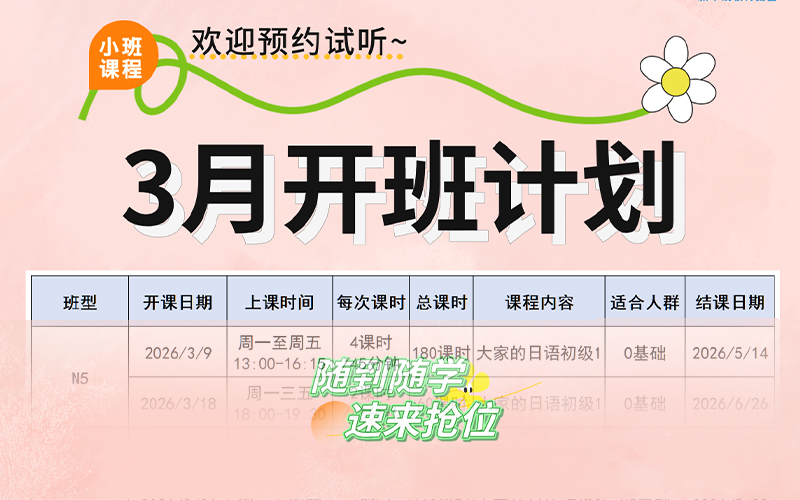 日语N4线上直播课1月11日正式开班,专为有明确目标的学习者设计,帮助你在有限时间内,系统夯实基础、顺利迈入实用日语阶段[ 详细 ]
